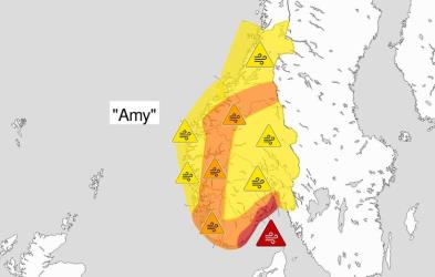 Oppdatert kl 15.00: Varsel - Oransje nivå: regn og vindkast