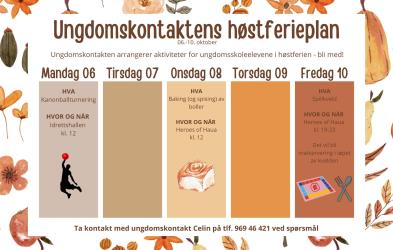 Høstferieplan for ungdomsskoleelever - 06.10.2025 - 10.10.2025