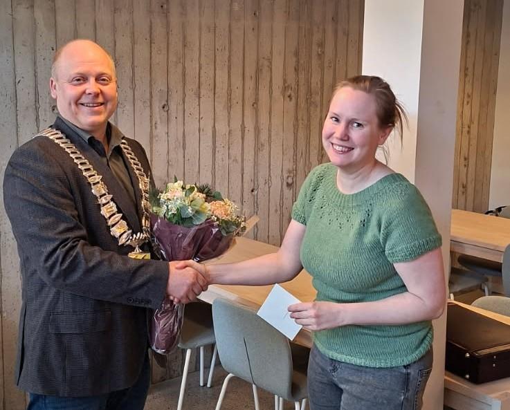 Årets ildsjel: Linn ÅrrestadÅrets ildsjel utnevnt av Sokndal Idrettsråd ble i år Linn Årrestad. Publisert 23.04.2026 13.53 Blomster og gavekort overrekkes Linn Årrestad av ordfører Bjørn Inge Mydland. Henning Årstad Hun startet med turn da hun var fire år, og har vært med i turnen siden da. Nå sitter hun som leder i styret for Sokndal turnforening. I tillegg har Årrestad vært aktiv i speideren i mange år, hvor hun også er med som en av lederne. Navnetrekket hennes finner man også på flere av maleriene utendørs i Sokndal. I flere år ledet hun også komiteen for Sokndalsdagene. Linn Årrestad er en allsidig dame, som har gjort og gjør mye for mange i Sokndal. Gratulerer!