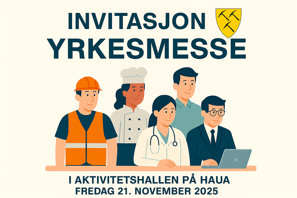 Invitasjon til Yrkesmesse i Aktivitetshallen på Haua, fredag 21. november 2025Sokndal Næringsforening, Sokndal Skole og Sokndal kommune inviterer bedrifter og andre til å delta på Yrkesmesse i Aktivitetshallen fredag 21. november 2025 fra kl.10 til kl.14. Målgruppe Elever fra 6. til 10. klasse ved Sokndal skoleYrkesmessen er åpen for alle MålSynliggjøre jobbmuligheter i egen bedrift Synliggjør ulike yrkesgrupper, både innen høyere utdanning og fagbrevMotivere ungdommen til å ta utdanning som det i framtiden vil være behov for i Sokndal og område rundt Stand Ønsker å ha med så mange bedrifter som mulig med tilknytning til Sokndal og regionen Videregående skoler inviteres også til å delta med stand Det er gratis å delta Kåring og premiering av beste stand! Hjertelig velkommen til Yrkesmesse! Beste hilsen fra arbeidsgruppen Torgeir Nodland, Ole Geir Uthaug og Liv Ingrid Torkelsen