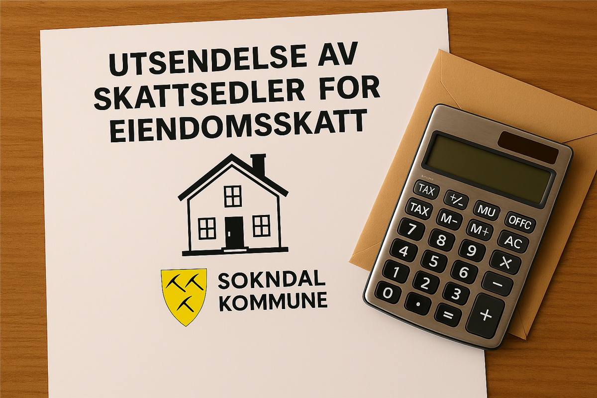 Utsendelse av skattesedler for eiendomsskattInformasjon om årets eiendomsskatt.Vi vil informere om at vi nå sender ut skattesedler for eiendomsskatten. Dette er ikke en faktura, den mottar du sammen med kommunale avgifter på vann og avløp. Hvert år blir eiendomsskatten og størrelsen på denne vedtatt i kommunestyret i forbindelse med budsjettbehandlingen. I denne prosessen vedtas også neste års skattesats, hvilke eiendommer som skal fritas for eiendomsskatt, og hvorvidt kommunen skal ha bunnfradrag.For 2026 er de vedtatte satsene som følger:· Generell skattesats: 7 promille· Skattesats for bolig- og fritidseiendommer: 2 promille· Bunnfradrag for bolig- og fritidseiendommer: 100 000 kronerVi oppfordrer alle eiendomseiere til å sette seg inn i de nye satsene og eventuelle fritak som kan gjelde for deres eiendommer.Dersom du har en takst basert på formuesgrunnlag fra Skatteetaten, vennligst kontakt Skatteetaten hvis verdien er feil. Formuesgrunnlaget er en verdiansettelse av eiendommen din som brukes av Skatteetaten for å beregne formuesskatt.Hvis vurderingen din er basert på kommunalt vedtatt takst, betyr det at kommunen har gjennomført en egen vurdering av eiendommens verdi for å beregne eiendomsskatten. Dette basert på befaring av din eiendom. I dette tilfellet kan du kontakte kommunen for ytterligere informasjon. En eventuell klage sendes til eskatt@sokndal.kommune.no innen 6 uker.